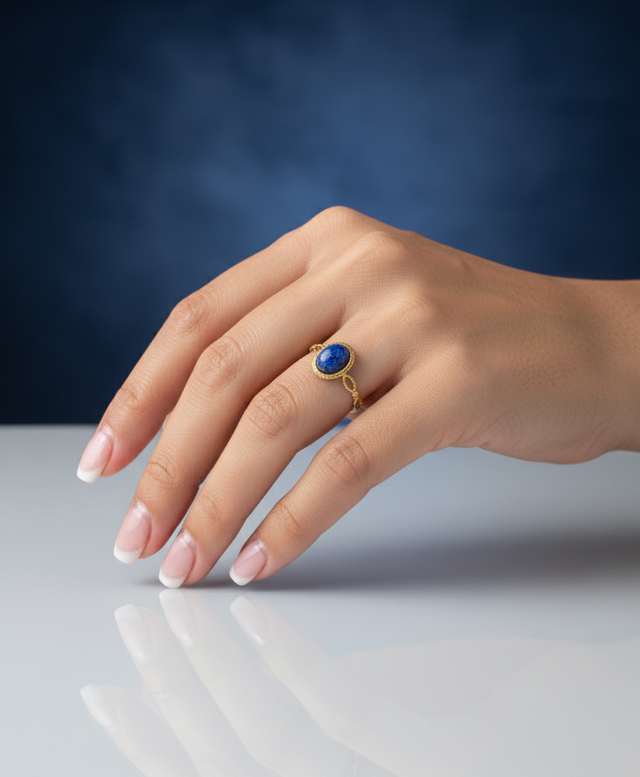 Este anillo representa a la flor que simboliza la belleza, amor y pureza. Reina indiscutible entre las flores, se une aquí a la esencia de la noche con ese tono azul intenso que la caracteriza.